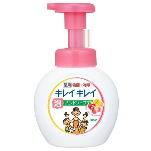 Lion Мыло-пенка для рук KireiKirei 500 млЖидкое мыло-пенка для рук подходит для детей и взрослых. Антибактериальный компонент IPMP удаляет вирусы и бактерии и сохраняет защитную функцию кожи. Пышная пенка тщательно удаляет загрязнения и легко смывается, не оставляя ощущения скользких рук. Ионы цинка, входящие в состав антибактериальной обработки носика-дозатора, активируются водой, прикрепляются к отрицательно заряженным бактериям и не дают им размножаться. Аромат микса свежесобранных фруктов.