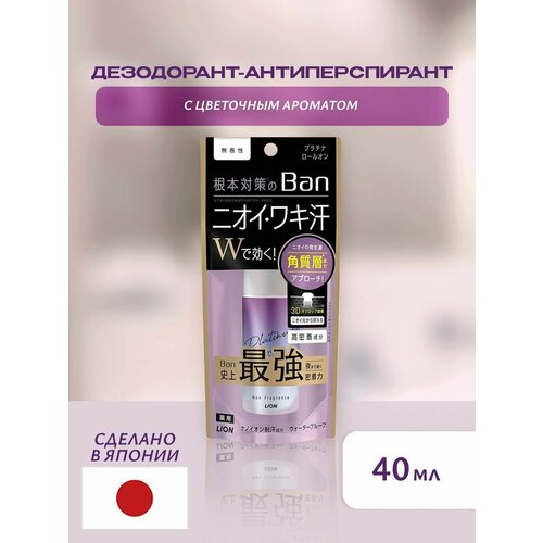 Lion Водостойкий роликовый дезодорант антиперспирант без запаха BAN Platinum 40 мл