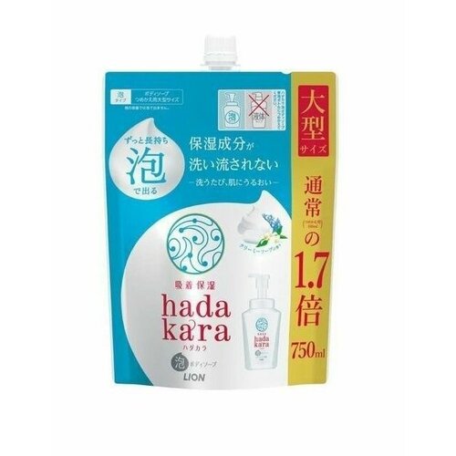 LION Бархатное увлажняющее мыло-пенка для тела с ароматом кремового мыла Hadakara 750 мл (мягкая упаковка с крышкой)