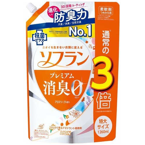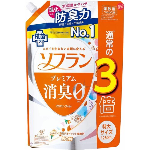 LION SOFLAN Premium Aroma Natural Кондиционер для белья, аромат цветочного мыла, МУ 1260 мл