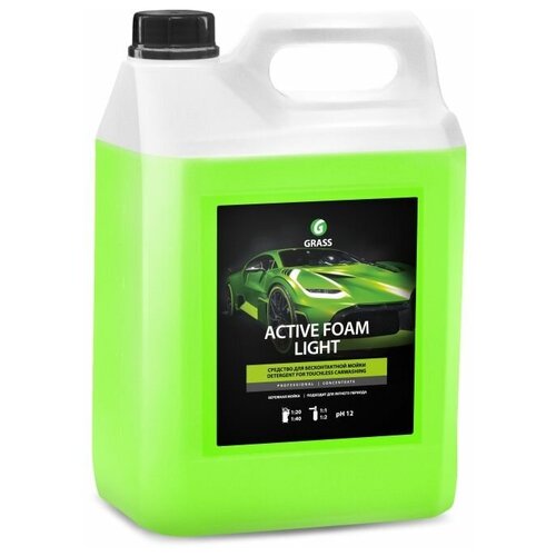 Автошампунь для бесконтактной мойки Grass Active Foam Light 5 л (концентрат). Назначение: концентрированное слабощелочное средство для бесконтактной мойки автотранспорта. Без труда удаляет дорожную пыль, грязь, масло, следы от насекомых. Легко смывается с поверхности, не причиняя вреда покрытиям из сплавов цветных металлов. Идеально подходит для мойки автомобиля в летний период. Содержит антикоррозионные добавки. Способ применения: расход на одну легковую машину должен составлять 90-170 г концентрата. 1. Перед нанесением средство необходимо разбавить из расчета 1:1-1:2 (330-500 г) в пенокомплект (1 л иди 1:20-1:40 (25-48 г/л) для пеногенератора (25, 50, 100 л), в зависимости от степени загрязнения. 2. Сбить с поверхности верхний слой грязи, после чего нанести разбавленный состав снизу вверх, чтобы избежать подтеков. 3. Выдержать 1-2 мин. , не допуская высыхания! Тщательно смыть водой под высоким давлением. Состав: ?30% очищенная вода; <5%: анионные ПАВ, неионогенные ПАВ, соль эдта, гидроксид натрия, краситель. Срок годности: 24 месяца с момента производства (при соблюдении условий хранения рекомендованных производителем).