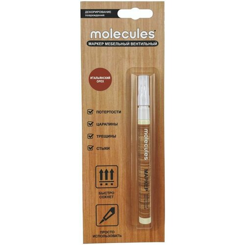 Новинка! Маркер Molecules предназначен для устранения царапин и трещин, сколов, заполнения швов и стыков. Отличается простотой эксплуатации и быстро сохнет после нанесения. Подходит для ламината, паркета, фанеры, пластика, массива дерева. Перед обработкой поверхность рекомендуется очистить от пыли и грязи.Особенности:цвет — итальянский орех;объем — 7 мл.Применение продукта: РемонтМарка: MOLECULESВремя высыхания между 2 слоями (ч): 0.01Тип использования: Маскировка разрыва или царапиныЦвет: Итальянский ОрехМесто использования: Внутренний / наружныйСтрана производства: РоссияТип упаковки: Блистерная упаковкаСостав: АкрилОттенок: Итальянский орехТип продукта: МаркерНазначение: МебельЦветовая палитра: КоричневыйВес, кг: 0.02Консистенция: Кремовый
