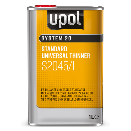 S2045 Разбавитель Мультифункциональный, Стандартный. SYSTEM 20. Идеален для ремонта больших поверхностей. Используется с грунтами, лаками и большинством базовых покрытий на основе органических растворителей.