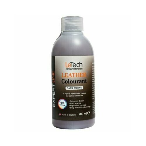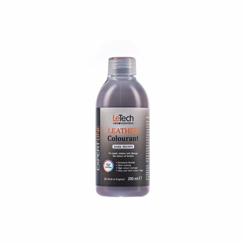 Краска для кожи, для кожи автомобиля, для обуви, для одежды, темно-коричневый, LeTech (Leather Colourant) Dark Brown 200 ml