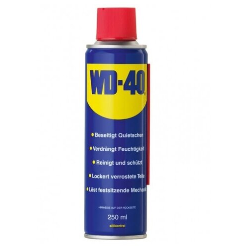 Универсальное смазочное средство.Применение:- Вытесняет влагу и препятствует замерзанию замков, стекол.- Очищает от ржавчины, облегчает откручивание приржавевших болтов и гаек.- Очищает поверхности от грязи, следов клея. Отлично справляется с большинством загрязнений.WD-40 прекрасно подходит для очистки металлических, деревянных или резиновых деталей. А вот для очистки пластика или пенопласта использовать ее нельзя.Меры предосторожности:Жидкость огнеопасна, токсична, избегать попадания в глаза, долго не дышать парами.Негативно влияет на лакокрасочное покрытие автомобиля. Место попадания капель WD-40 на лако-красочное покрытие автомобиля нужно тщательно протереть.
