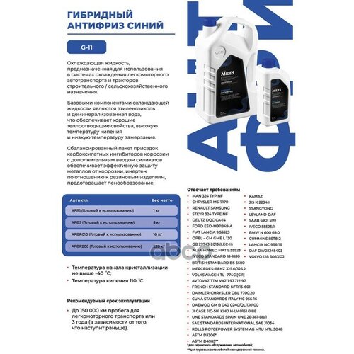 Антифриз G11 Miles Готовый 10Кг Miles арт. AFBR010