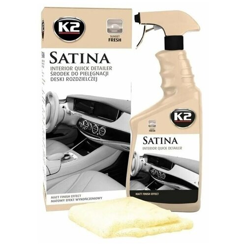 Уникальный продукт для ухода за приборной панелью и всеми пластиками внутри автомобиля. Создан для самых требовательных любителей автокосметики.Благодаря инновационной рецептуре восстанавливает первоначальный вид пластиковых, виниловых или резиновых элементов, глубоко проникая в материал, подчеркивая цвет и подчеркивая его естественную структуру.Оставляет гладкую и атласную поверхность без эффекта блеска и липкого и жирного налета. Он содержит антистатические добавки, благодаря которым грязь и пыль не оседают на поверхности.Содержание сильных УФ-фильтров предотвращает деградацию материала и позволяет сохранить длительный эффект новинки.В комплекте K2 SATINA 770 мл + микрофибра.КАК пользоваться:Распылите состав непосредственно на микрофибру;Обработайте поверхность;Разотрите чистой микрофиброй.