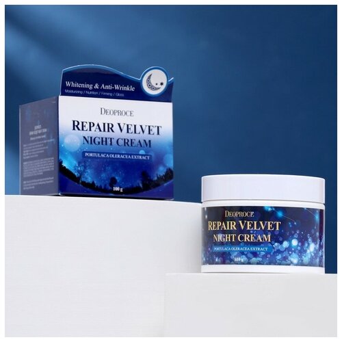 Moisture Repair Velvet Night Cream – продукт из цикла вечернего ухода за лицом, он восстанавливает кожу на клеточном уровне и обеспечивает ее необходимыми питательными веществами. Крем от компании Deoprose работает, пока вы спите.Результаты от регулярного применения крема:- кожа мягкая и увлажненная на 100%, шелушения уйдут уже через несколько применений;- ровный тон лица, осветление пигментации; Разглаживание мимических морщин и заломов;- улучшение тонуса кожи, эффект сияния изнутри.Внешний вид: крем упакован в стандартную баночку глубокого синего цвета, благодаря наличию защитной мембраны продукт защищен от проникновения бактерий. Крем обладает нежной невесомой текстурой, которая легко и экономично распределяется по коже, не оставляя ощущения липкости.Особенности продукта: более всего крем подойдет обладательницам сухой кожи лица, для жирной и склонной к жирности кожи он может показаться несколько тяжелым, в этом случае продукт рекомендуется использовать только на ночь, во избежание возникновения жирного блеска в течение дня.