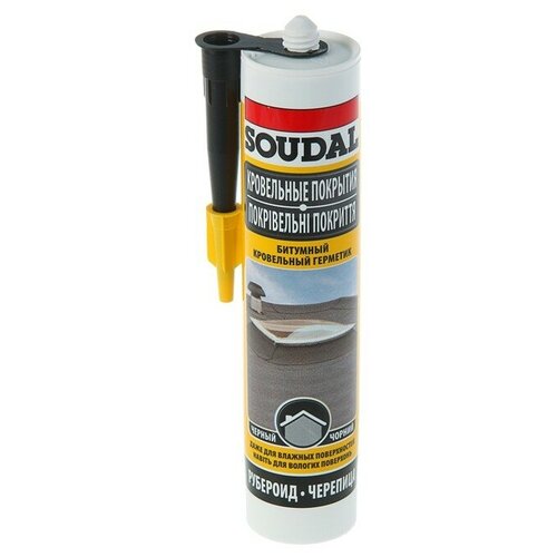 Водостойкий и водонепроницаемый герметик Soudal на основе битумных эластомеров применяется для ремонта крыш, водостоков и кровельных работ.ПреимуществаУстойчив к УФ-излучению и температурам в диапазоне от ‒ 35 до +130 °С.Не вступает в реакцию с пенопластом.Отличная адгезия (прилипание) к рубероиду и битумным поверхностям, бетону, керамической черепице и металлам.Применение:Герметизация щелей и трещин в кровельных покрытиях.Герметизация во время кровельных работ.Ремонт водосточных труб и желобов.Холодная склейка рубероида всех видов.Водонепроницаемая герметизация строительных соединений с небольшой движимостью (до 10 %).Герметик используется со специальными пистолетами.