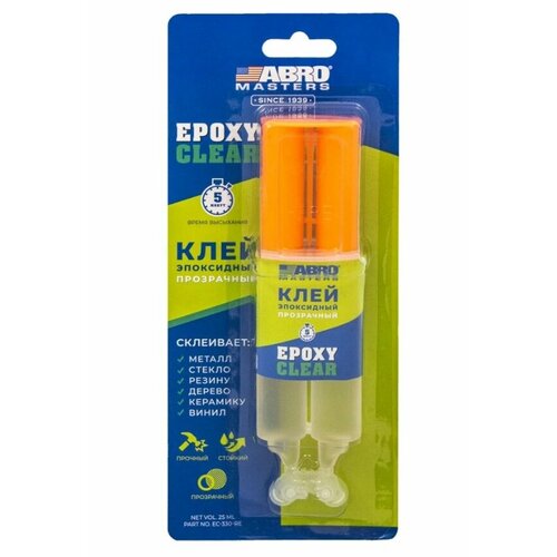 Клей эпоксидный прозрачный в шприце 25 мл ABRO MASTERS / 0790920251506