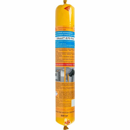 Sikasil® 670 Fire – силиконовый противопожарный герметик для деформационных швов, делающих их непроницаемыми для дыма, пламени и воды. Преимущества Предел огнестойкости в соответствии с ГОСТ 30247.0-94 и ГОСТ 30247.1-94 EI240 (240 минут).Нейтральный тип отверждения.Стойкий к воздействиям окружающей среды, УФ-излучению и старению.Деформационная подвижность ±35 % (ASTM C 719).Очень хорошие рабочие характеристики – нанесение, заполняемость, легко разглаживается.Хорошая адгезия к широкому спектру материалов. Характеристики Тип продукта - ГерметикСостав - Силикон нейтральныйВес, кг - 0.813Цвет - Белый (или серый, или черный в зависимости от этикетки на страницеЦветовая палитра - Белый, серый, чёрныйМесто использования - Внутренний / наружныйВодонепроницаемый - ДаМарка - SikaСтрана производства - ВеликобританияТип упаковки - ТубМатериал поверхности применения - Бетон, Кирпич, Дерево, Металл, СтальАнти-плесень - НетМорозостойкость - ДаТермостойкость - ДаНеобходим пистолет - ДаВозможность окрашивания - НетСпособ очистки - С растворителемВремя высыхания (ч) - 2 мм / 24 ч (при 23 °C, отн. вл. возд. 50 %)Объем (мл) - 600
