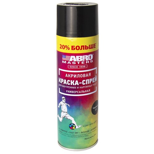 ABRO Краска-спрей Черная глянцевая стандарт +20% ABRO MASTERS (624мл) (ABRO)