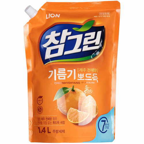 Средство для мытья посуды, овощей и фруктов Японский мандарин 1.4 л [Lion] Chamgreen Cheonhyehyang Refill