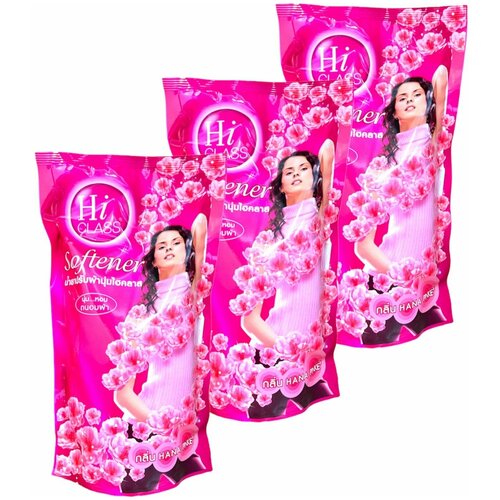 LION Кондиционер для белья 3 шт Hi-Class Hana Pinke / мягкая упаковка 500 мл / Таиланд