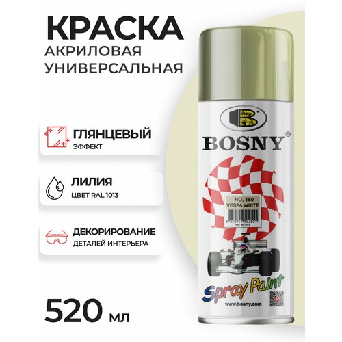 Аэрозольная краска в баллончике Bosny №150 акриловая универсальная, цвет лилия, RAL 1013 (BOSNY NO. 150), 520 мл