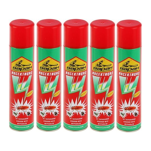 Варан Форте универсальный - средство инсектицидное для уничтожения нелетающих (муравьи, клопы, тараканы, блохи, кожееды) и летающих (мухи, комары, москиты, бабочки моли) насекомых в помещениях. Для уничтожения нелетающих насекомых: с расстояния 15-20 см направить струю аэрозоля на поверхности - места скопления, возможного обитания или пути передвижения насекомых. Для уничтожения муравьев - пути их передвижения (дорожки) и гнезда; тараканов и клопов - места их скопления и возможного обитания (плинтусы, щели в стенах и мебели, места отхождения обоев, обратную сторону картин, ковров); блох - щели в полу и за плинтусами, пороги, стены на высоту до 1 м, подстилки для животных которые перед использованием должны быть выстираны; кожеедов - плинтусы под радиаторами отопления, кроватями, шкафами, подоконники, стыки шкафов, обратную сторону шкафов и полок. После обработки помещение проветрить сквозным потоком воздуха в течение 30 мин.Дихлофос универсальный Варан Форте от клопов, тараканов и других насекомых, 200 мл х 5 штук