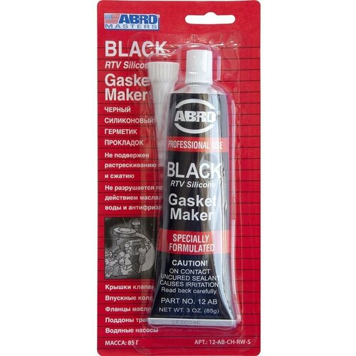 Герметик силиконовый черный 85 гр. ABRO 12ABCHRWS. - Принимает любую форму и успешно выдерживает сжатие, растяжение и сдвиг. - Не разрушается под действием автомобильных масел, воды и антифриза. - Устойчив к большинству автомобильных жидкостей (за исключением бензина). - Предназначен для применения при температурах до 260С.