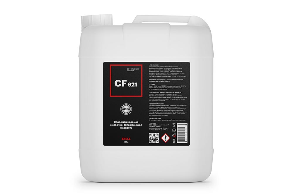 Полусинтетический эмульсол на основе композиции синтетического и минерального масла, универсального применения. Поставляется в виде концентрата. Сбалансированные в равной степени смазывающие, охлаждающие и моющие качества позволяют применять EFELE CF-621 для всех видов металлообработки.