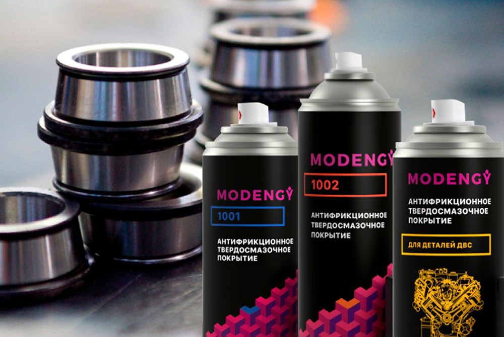 Антифрикционное твердосмазочное покрытие Modengy 1001. В его составе используется дисульфид молибдена и графит. Фасовки 210 мл (доступно в аэрозоли), 200 г, 600 г, 4,5 кг. Российская компания «Моденжи» специализируется на изготовлении твердой смазки и сопутствующих продуктов. Покрытие MODENGY 1001 является одним из универсальных материалов, которое можно использовать для обработки токарных станков, клапанов ТЭС, типовых узлов и прочих механизмов. Данный материал обеспечивает очень низкий и постоянный коэффициент трения, характеризуется высокой химической стойкостью, устойчив к загрязнениям различного рода. Выдерживает температуры от -180 до +440 С.