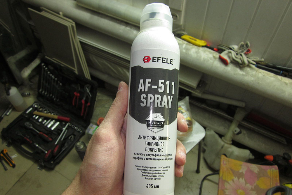 Антифрикционные составы Efele эффективны в условиях сильных нагрузок, высоких и низких температур. Покрытия снижают уровень трения между соприкасающимися деталями, характеризуются высокими показателями адгезии, быстрой полимеризацией (застывают за 10 минут в виде тонкой пленки, толщиной 15-20 микрон) без снижения свойств и производительности. Под брендом Efele выпускаются не только жидкие, но и твердые смазочные составы, которые эффективно препятствует прямому контакту соприкасающихся поверхностей, минимизируя износ. Сухая смазка предотвращает налипание пыли и абразивных частиц. Область применения – большинство существующих механизмов.