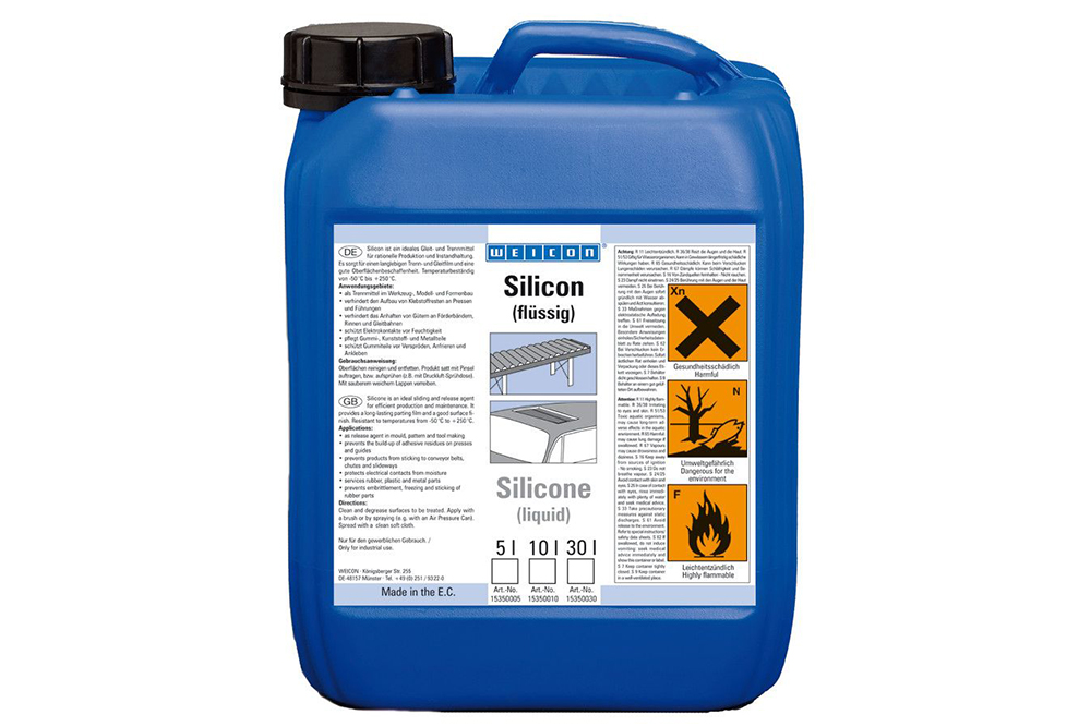 Смазка Weicon Silicone применяется в разных направлениях промышленности и задействуется для обработки деталей из резины, пластмассы и металла. Вещество формирует прочную разделительную пленку, обладающую отличными поверхностными свойствами. Защищает электрические контакты от влаги, резиновые детали от замораживания, прилипания и хрупкости.