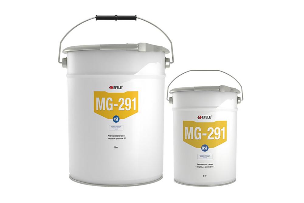 EFELE MG-291 – смазка с пищевым допуском. Задействуется при обслуживании техники фармацевтической, пищевой, комбикормовой промышленности, а также в других направлениях, где требуется использование составов категории NSF H1. Веществом обрабатывают подшипники, направляющие качения и скольжения, рабочая температура которых – от -20 до +120 °C. Также смесь используется в автоматических контурах подачи смазки. Обрабатываемые пары трения: металл/металл, металл/пластик. MG-291 не имеет запаха, отличается хорошими антикоррозийными, противоизносными и противозадирными показателями.