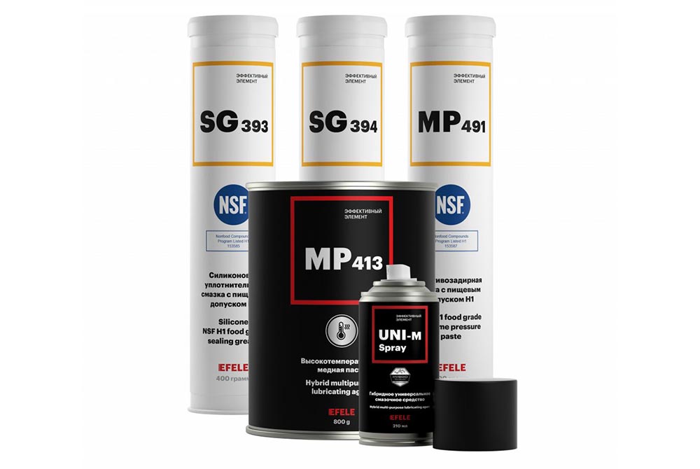 Смазочные и герметизирующие материалы EFELE применяются для обеспечения бесперебойной работы оборудования в машиностроительной, металлургической, аграрной, нефтегазовой, химической, энергетической, авкикосмической, пищевой, фармацевтической, стекольной отраслях промышленности. Смазки и масла EFELE способствуют повышению производительности оборудования, снижают энергозатраты и упрощают технологический процесс.