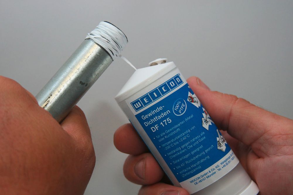 • Тефлоновая нить DF. Этот материал предназначен для уплотнения резьбовых соединений различного типа на пластиковых и металлических конструкциях. Нить DF хорошо подходит для создания тонких герметичных вставок.