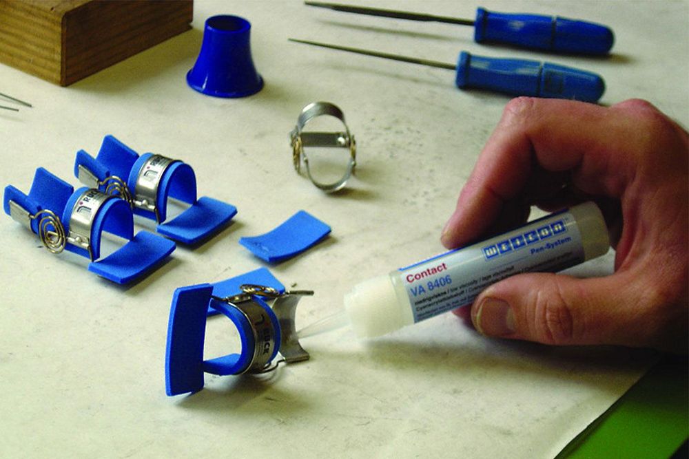 Наиболее трудносклеиваемые материалы – пластики, эластомеры, резины. Здесь ярким примером становится клеящий продукт VA 8406 с предварительной грунтовкой праймером WEICON CA-Prime. Этот цианоакрилат склеивает даже детали из силикона.