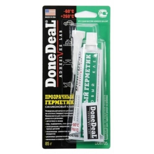Герметик силиконовый DONE DEAL прозрачный 85г. Не секрет, что машина давно уже перестала восприниматься как просто средство передвижения, и водители покупают всё лучшее для своих железных коней. Герметик силиконовый DONE DEAL прозрачный 85г — идеальный выбор, если вы ставите целью и улучшение технических характеристик, и поддержание внешнего вида автомобиля. (2585191)