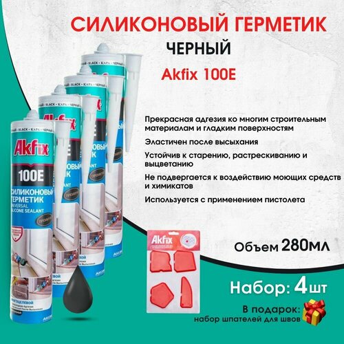 100E Универсальный силиконовый герметик Akfix, 280 мл, черный, 4 штуки
