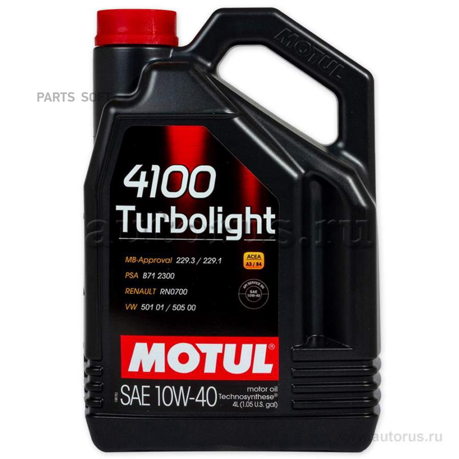 Моторное масло Motul 4100 Тurbоlight Арi Sl/Сf, Асеа А3/В3 Vw 500/505 10W40 4л