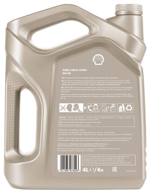 Моторное масло Shell синтетическое Helix Ultra 5W40 4л