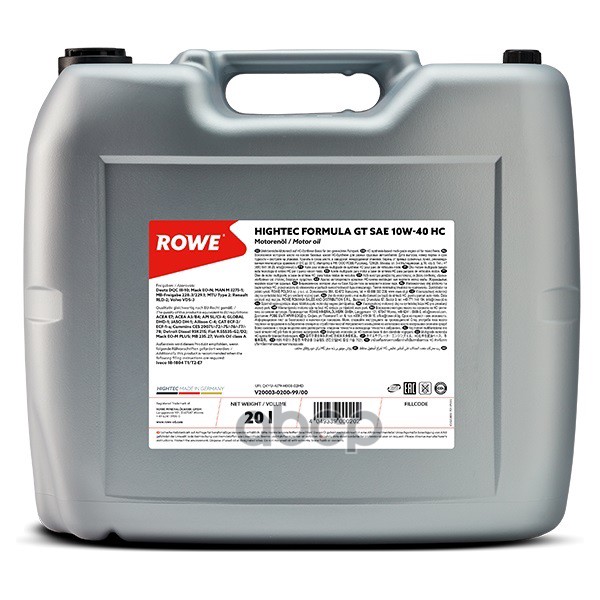 Моторное масло ROWE синтетическое 10w40 Hightec Formula Gt 20л