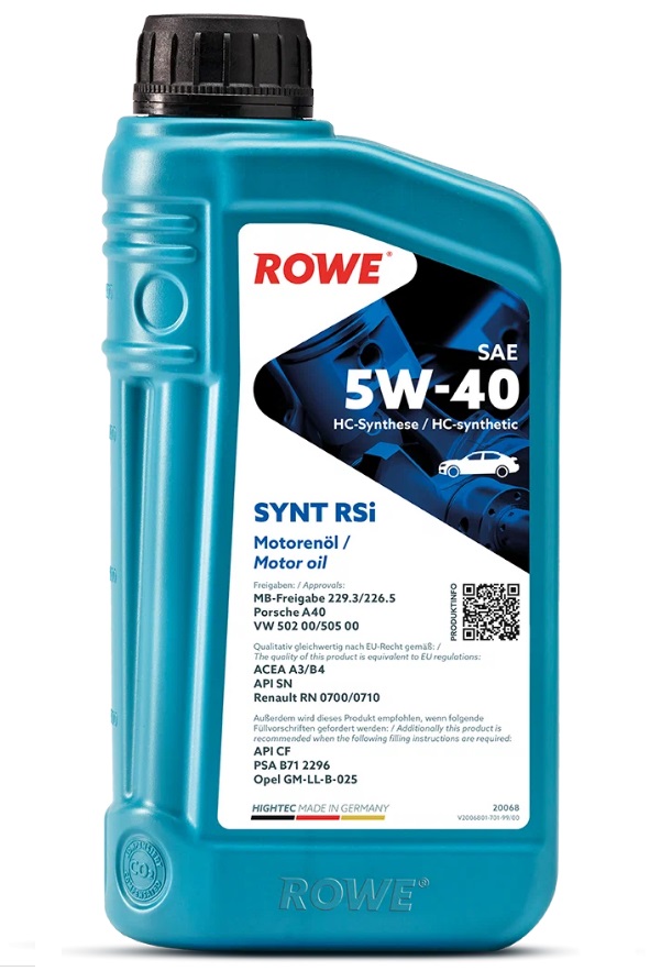 Моторное масло ROWE синтетическое 5w40 Hightec Synt Rsi A3/B4,Api Sn 1л