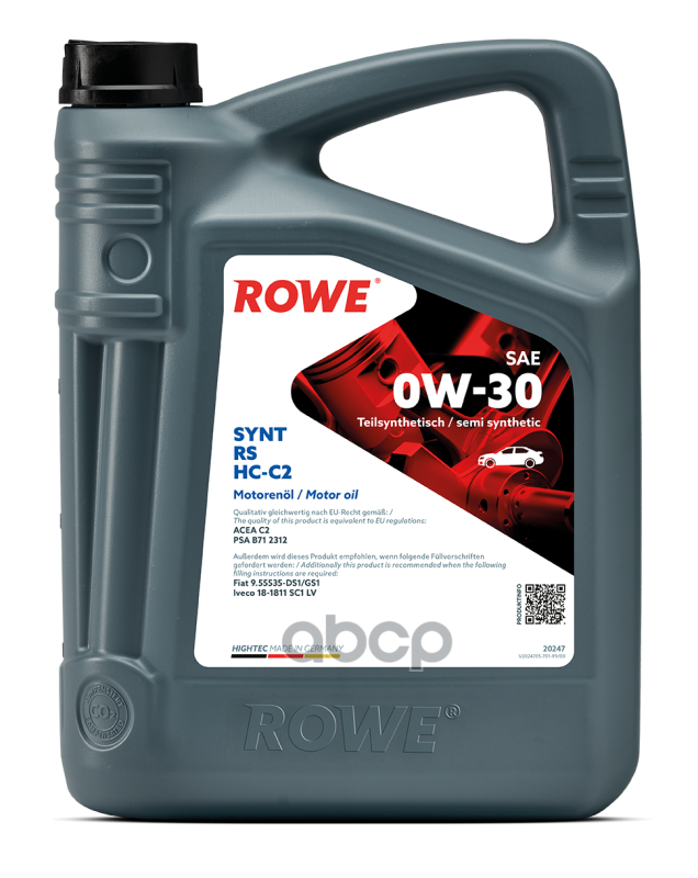 Масло Rowe 0/30 Hightec Synt Rs Hc-C2 Синтетическое 5 Л