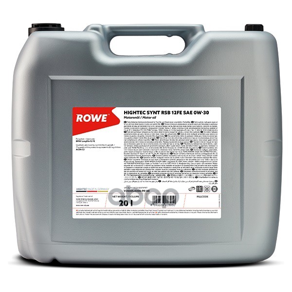ROWE Масло Rowe 0/30 Hightec Synt Rsb 12fe Полусинтетическое 20 Л