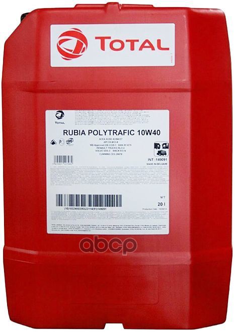 Моторное масло TOTAL полусинтетическое RUBIA TIR 7400 10W40 20л