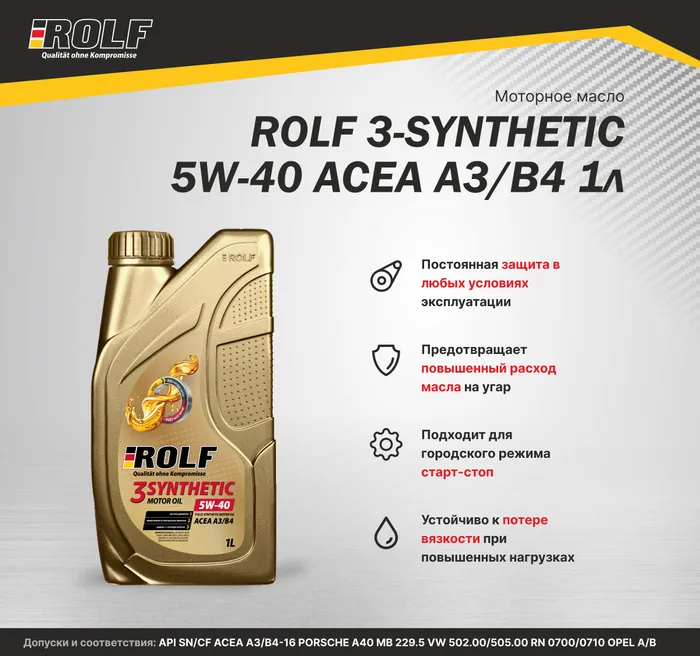 Моторное масло Rolf синтетическое 3-SYNTHETIC 5W30 ACEA С3 1л