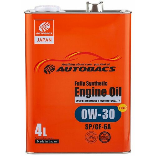 AUTOBACS Масло моторное AUTOBACS 0W-30 SP/GF-6 синт. 4L Масло моторное синтетическое для бензиновых и дизельных двигателей, в том числе с турбонаддувом. GF-6