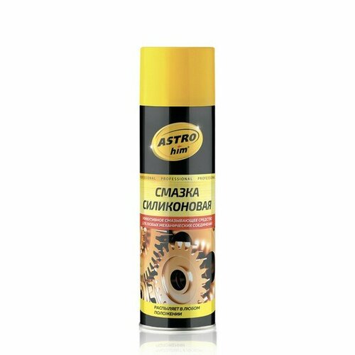 AC-4616 ASTROhim Силиконовая смазка, 650 мл - Профессиональная концентрированная смазка для ухода за механическими соединениями в автомобиле (замки и петли дверей, капота, багажника, стеклоподъемники, тросы, личинки замков, приводы и направляющие).Смазка силиконовая ASTROhim - незаменимое средство для обслуживания промышленного оборудования.Помогает избежать примерзания и растрескивания резиновых уплотнений дверей, багажника, капота в условиях отрицательных температур.Продлевает срок службы резиновых уплотнителей.Защищает систему зажигания от проникновения влаги и утечки тока.Защищает металлические соединения от коррозии, устраняет неприятные скрипы и прикипание деталей.Профессиональная формула смазки содержит концентрированную смесь силиконовых полимеров, которые образуют на поверхности тонкую пленку с высокими смазывающими и водоотталкивающими свойствами в широком интервале температур (от -40 до +170 C). Смазка способна оставаться на поверхности после многочисленных моек и при частом перепаде температур.Легко наносится благодаря аэрозольному распылению, экономична при нанесении.Не содержит минеральное масло.