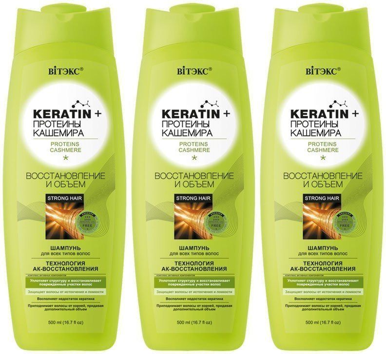 Шампунь Витэкс для всех типов волос Восстановление и объем,500 мл, 3 шт