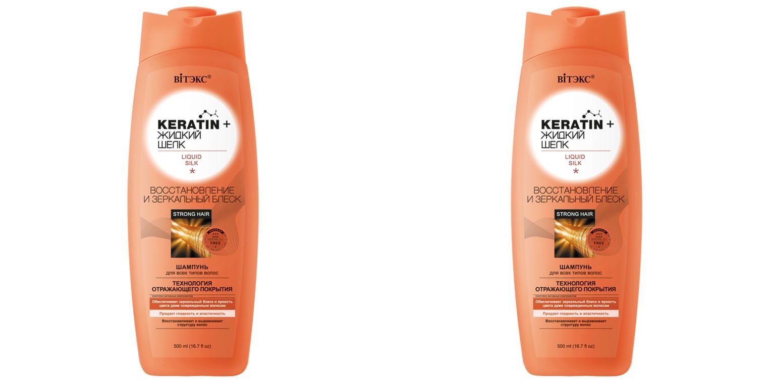 Шампунь Витэкс Keratin&Жидкий шелк, Восстановление и зеркальный блеск 500 мл, 2 шт.