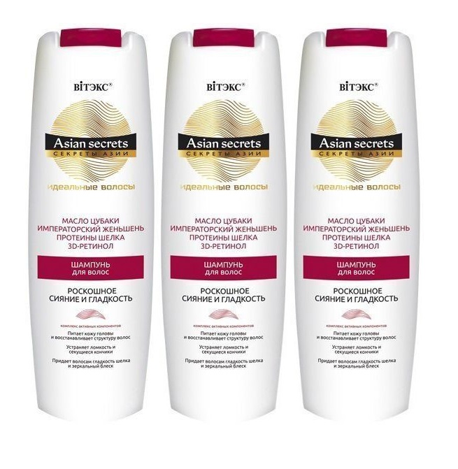 Шампунь Витэкс для волос Роскошное сияние и гладкость, 400 мл, 3 шт