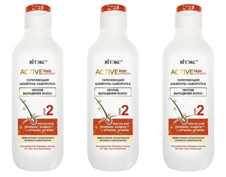 Укрепляющий ШАМПУНЬ-СЫВОРОТКА Витэкс ACTIVE HairComplex против выпадения волос 250мл 3шт