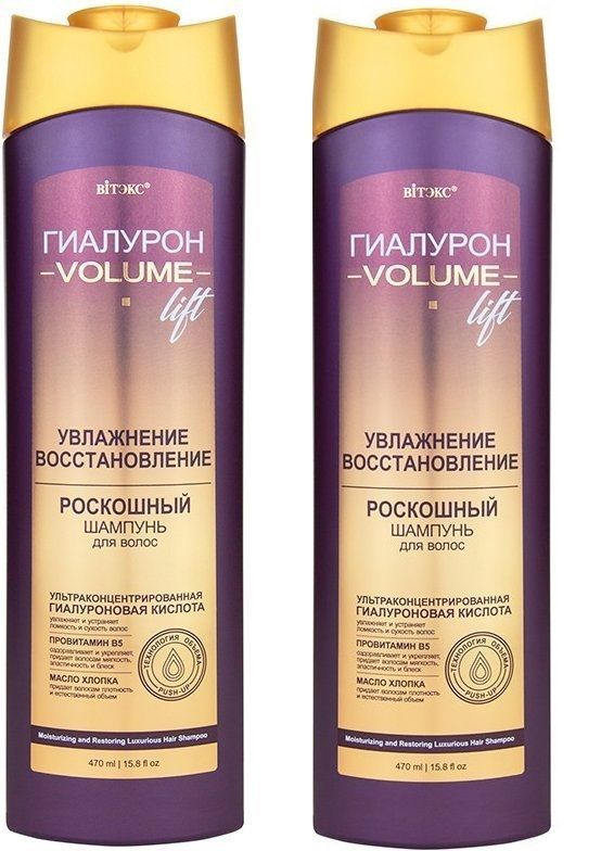 Роскошный шампунь Витэкс увлажнение и восстановление ГИАЛУРОН VOLUME LIFT 470мл 2шт