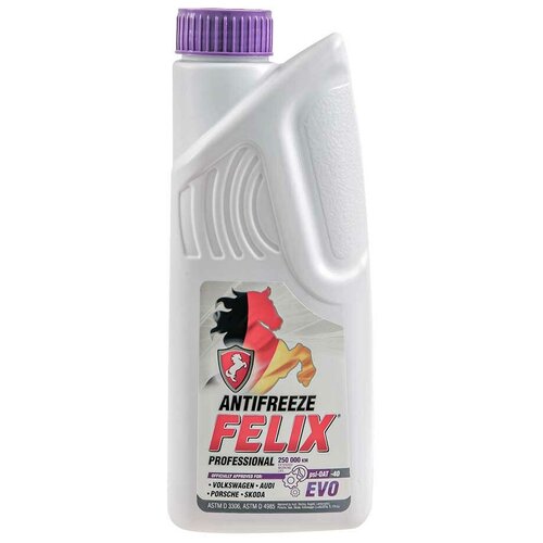 Антифриз FELIX EVO – предназначен для использования в любых современных системах охлаждения автомобилей при температуре окружающего воздуха до минус 40°C. Содержит в составе пакет ингибиторов коррозии на основе солей органических кислот, фосфатов и силикатов (Psi-OAT). Отвечает особым требованиям современных двигателей Volkswagen Group, не содержит в составе нитритов, аминов и боратов, превосходно защищает от коррозии, перегрева и промерзания, обеспечивая увеличенных срок службы, даже при высоких тепловых нагрузках. Официальное одобрение Audi, Bentley, Bugatti, Lamborghini, Porsche, Seat, Skoda, Volkswagen (≥06/2018, TL 774-L). Обладает увеличенным ресурсом эксплуатации – 250 000 км. Обеспечивает быстрый прогрев двигателя при температурах окружающего воздуха от –40°С до + 50°С. Обладает повышенной термостабильностью и теплопроводностью. Усиленная концентрация карбоновых кислот позволяет достигать максимального уровня защиты от всех типов коррозии, в том числе кавитационного воздействия на металлы. Исключает возможность образования накипи и отложений. Продлевает срок службы системы охлаждения, даже при высоких тепловых нагрузках. Обладает высокими смазывающими свойствами. Готов к применению.
