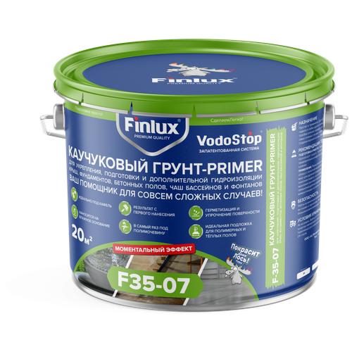 Каучуковый грунт-рrimer для гидроизоляции и подготовки бетонных полов в подвалах, гаражах и бассейнах Finlux VodoStop F35-07. 20 кв. м.