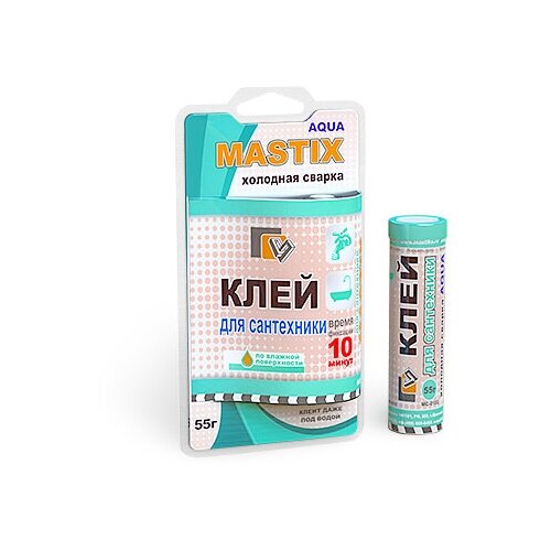 Клей-холодная сварка для Сантехники MASTIX» предназначен для быстрого и надежного склеивания, ремонта деталей и узлов, герметизации соединений и емкостей, для восстановления утраченных фрагментов изделий из керамики и фарфора, а также из цветных и черных металлов, пластмасс, дерева в различных комбинациях. Температура эксплуатации отремонтированных изделий от -60ºС до +150ºС. Обеспечивает надежный ремонт на влажных и замасленных поверхностях, при низких (до -10°С) температурах (при условии замешивания смеси в теплом помещении).способ применения1. Поверхности (участки), которые требуется склеить или восстановить, необходимо очистить, по возможности обезжирить (ацетоном, и т. п и просушить.2. Отрезать не менее 1/3 от объема стержня и тщательно смешать оба компонента пальцами рук в перчатках (удобнее перемешивать в перчатках, смоченных водой) до получения равномерной окраски массы.3. Полученную смесь нанести на ремонтируемую поверхность. При склеивании деталей нанести пластилин на обе соединяемые поверхности и, прижать и зафиксировать на 10-15 минут. 4. При использовании на влажных или замасленных поверхностях смесь необходимо приглаживать возвратно-поступательными движениями до ощущения прилипания её к поверхности (при этом прочность соединения снижается на 20-25% для замасленных поверхностей).5. В случае необходимости ремонта при низких температурах рекомендуется после выполнения пп.1 и 2 скатать из полученной массы шарик и держать его до разогревания в руках 3-4 минуты (но не более 4 минут с начала размешивания), и лишь после этого нанести на ремонтируемый участок.6. Для разглаживания ремонтируемой поверхности и придания ей необходимой формы используйте плоские предметы, смоченные водой.внимание!• Промежуток времени, за который необходимо подготовить и нанести смесь в процессе ремонта (время жизнеспособности) - 5-7 минут, при температуре окружающей среды не ниже +18°С. • При нанесении смеси тонким слоем, или при пониженной температуре окружающей среды - время жизнеспособности увеличивается, а при нагревании – уменьшается.• Клей схватывается (приобретает твердость) за 10-15 минут при температуре окружающей среды не ниже +20°С. На это время необходима взаимная фиксация соединяемых деталей.• Через 1-1,5 часа соединение можно подвергать механической обработке и нагрузке.меры безопасностиНе допускать попадания компонентов стержня в глаза и на кожу. Для исключения попадания на кожу при работе использовать защитные перчатки. При попадании в глаза промыть их водой и обратиться к врачу. Не использовать на поверхностях, контактирующих с продуктами питания. Беречь от детей.важноЕсли в результате хранения более 24 месяцев или резких колебаний температур хранения произошло отвердение внешнего слоя холодной сварки – нагрейте холодную сварку до +60 С. Можно использовать для этого радиаторы отопления, горячую воду, верхнюю крышку двигателя автомобиля и т. д.