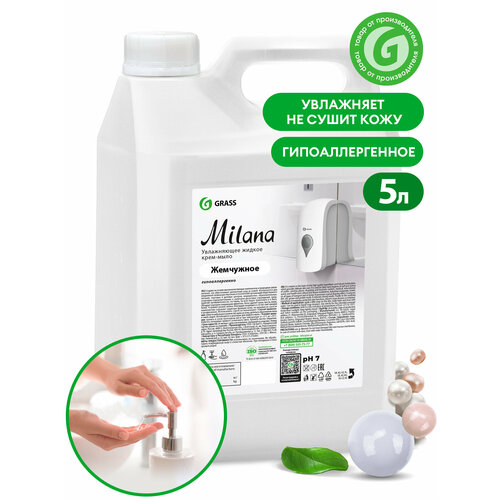 Жидкое крем мыло MILANA GRASS (ГраСС) жемчужное 5 литров - жидкое мыло создано на основе только высококачественных компонентов и природных увлажнителей, что обеспечивает деликатный уход за кожей. Жидкое мыло для рук подходит для бережной очистки рук и тела от любых загрязнений. Специальные компоненты в составе мыла защищают кожу от сухости, придают ей нежность и мягкость. Жидкое крем мыло подходит для ежедневного использования мытья рук. Жидкое крем мыло подходит для любых септиков. Соблюдая ежедневную гигиену рук вместе с мылом для рук Милана, вы не только увлажняете свою кожу, но также защищаете себя от бактерий. Мойте руки и наслаждайся разнообразной линейкой жидкого мыла от Грасс.